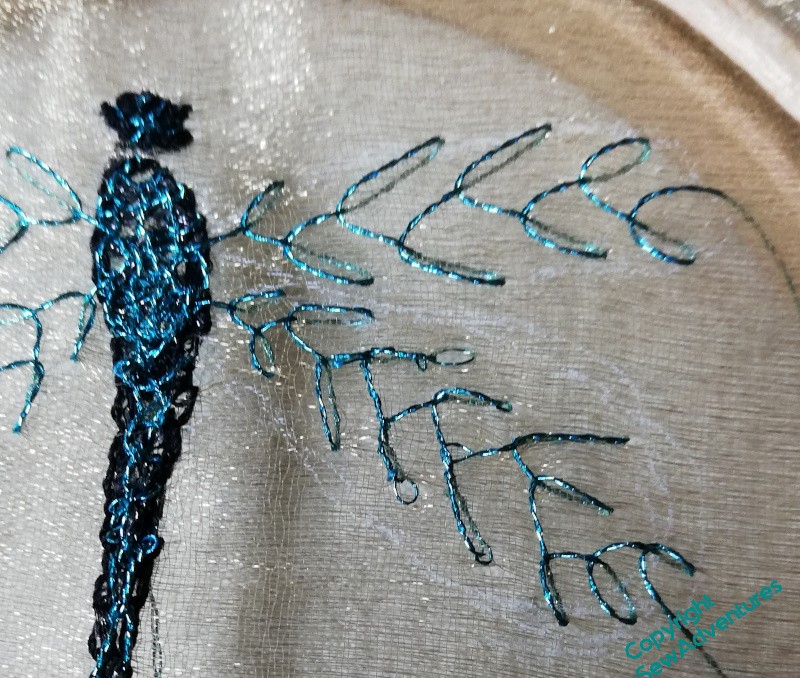 It has worked after a fashion, and the feather stitch veins on the wings also work after a fashion. But not quite.